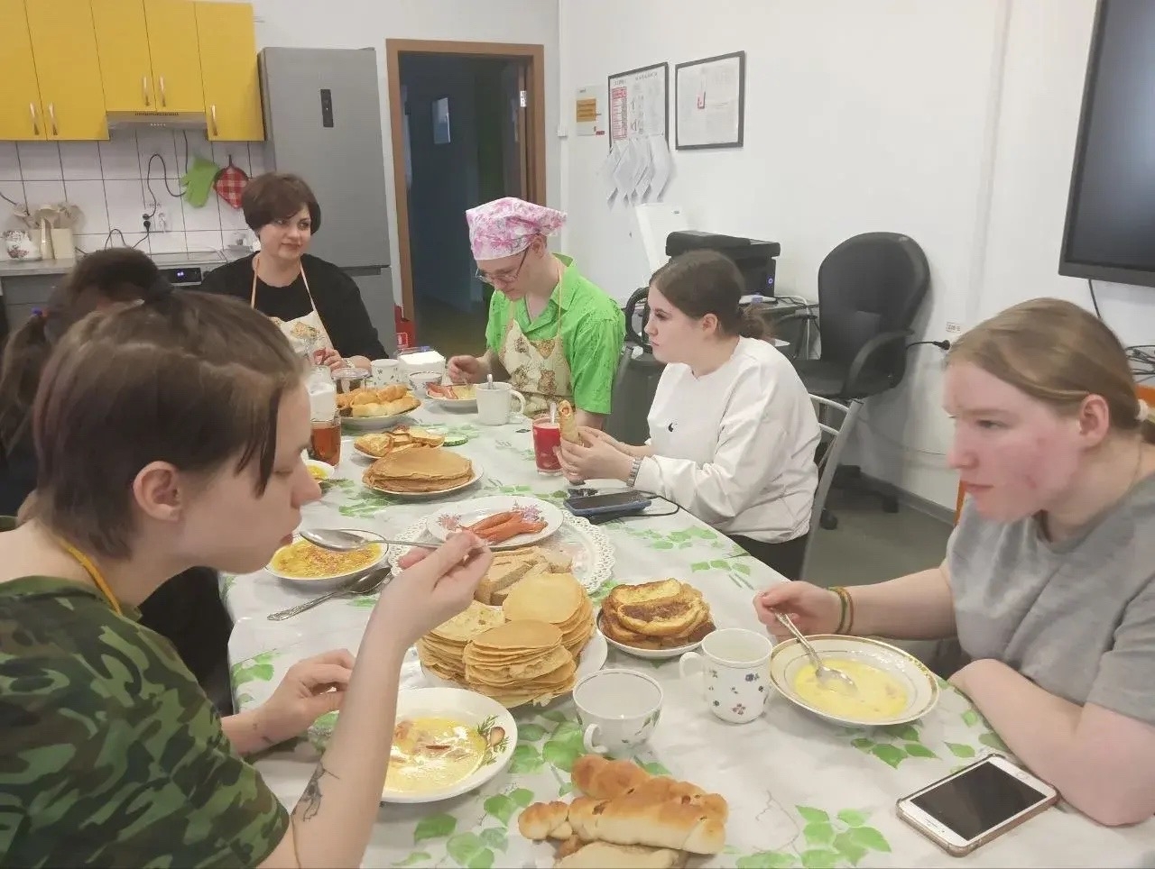В его преддверии шефы первичной профорганизации, работники ЦВСиВО, Дирекции по энергетике и Кислородного производства, устроили мастер-класс для своих подопечных. Они учили их, как правильно готовить традиционное угощение – пасхальную выпечку, красить яйца и другим кулинарным секретам.