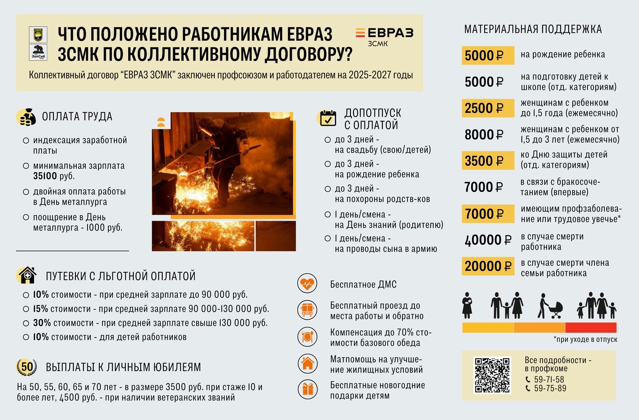 Что положено работникам АО "ЕВРАЗ ЗСМК" по Коллективному договору