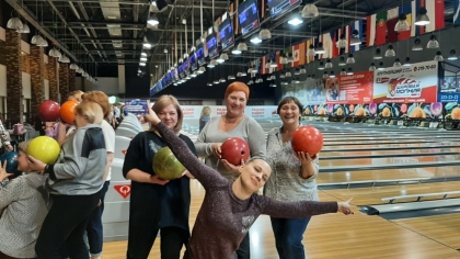 Суть игры, казалось бы простая: бросай шары, сбивай кегли, но не все так просто. Ведь, чтобы сбить все десять кеглей, нужно быть настоящим профи. Это не каждому удается, но среди наших женщин есть и такие. То с одной дорожки, то с другой звучали радостные крики о забитом страйке.