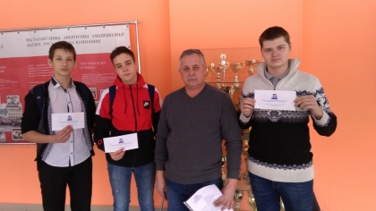 По итогам зимней сессии профсоюзные стипендии назначены Роману Хохлову («Металлургия цветных металлов»), Константину Ковалеву, («Сварочное производство»), Александру Садикову («Монтаж и эксплуатация электрооборудования промышленных и гражданских зданий»), Кириллу Алхименко и Денису Давыдяну («Автомеханик»).