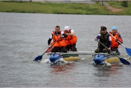 Далее – полоса препятствий. За минимальное количество времени команды должны были пройти различные испытания. На воде (катамаран и переправа вброд), на земле (переправа по бревну), задания на скорость и умение (распилка бревна, разведение костра и установка палатки), оказание первой медицинской помощи и «Поляна заданий».