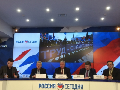 Сегодня, 27 апреля, в пресс-центре МИА «Россия сегодня» состоялась пресс-конференция "Первомайские мероприятия ФНПР в 2017 году".