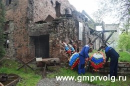 От руководства завода и сотрудников цеха контрольных испытаний венок и цветы были возложены к руинам Центральной заводской лаборатории, где за каждый сантиметр земли сражались воины 253-го Таращанского стрелкового полка 45-й стрелковой дивизии. Испещренные пулями, политые кровью героев-таращанцев руины оставили после Сталинградской битвы в память потомкам и как назидание – война не должна повториться вновь.