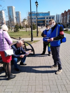 Каждый день добровольцы выходят в двухчасовые рейды для проведения профилактической работы и проверки соблюдения распоряжений губернатора области и главы города.