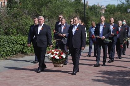 В память о великом подвиге советского народа к Вечному огню возложили цветы и венки глава Новотроицка, руководители городских предприятий и общественных организаций.