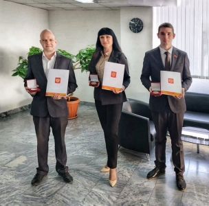 Управляющий директор «Уральской Стали» Ильдар Искаков вручил памятные медали «За бескорыстный вклад в организацию Общероссийской акции взаимопомощи «#МыВместе» профсоюзным волонтерам: