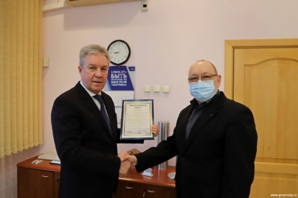 Генеральный директор Волгоградского алюминиевого завода Юрий Моисеев поздравил Горно-металлургический профсоюз России с 30-летием. От имени коллектива предприятия он вручил приветственное письмо председателю первичной профсоюзной организации ВгАЗа Игорю Князеву.