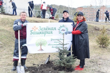 Сделать свой город зеленее – именно с такой целью руководители цехов и подразделений Учалинского ГОКа, а также председатель первичной профсоюзной организации Амур Зайнуллин, члены профсоюза присоединились к экологической акции «Зеленая Башкирия». На стадионе «Горняк» участники акции высадили 30 саженцев голубых елей и лип. Еще десять были высажены на городских улицах.