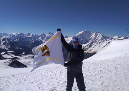 Флаг Горно-металлургического профсоюза России покорил Эльбрус. Официальный атрибут ГМПР на высшую точку России – 5642 метра – поднял работник Ашинского метзавода, член профсоюза Игорь Жаринов.