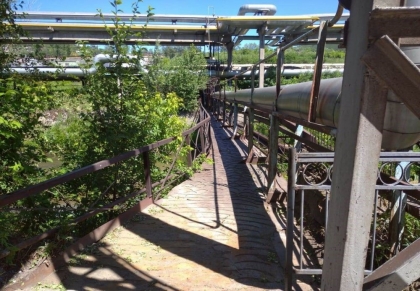 Мост расположен у здания охраны труда, в пяти минутах ходьбы от проходной №9, и более чем в два раза сокращает путь до склада спецодежды. В рамках реконструкции укрепили опоры моста, установили новые перила, лестницу, выровняли подступы к ней.