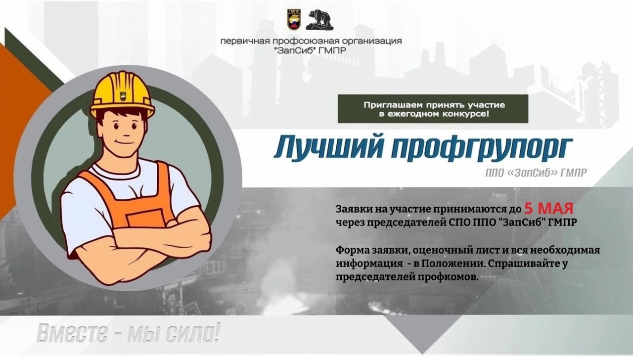Стартовал приём заявок на участие в ежегодном конкурсе «Лучший профгрупорг ППО «ЗапСиб» ГМПР».