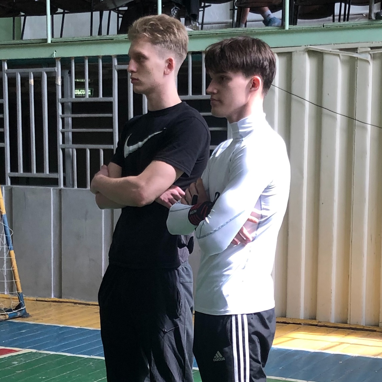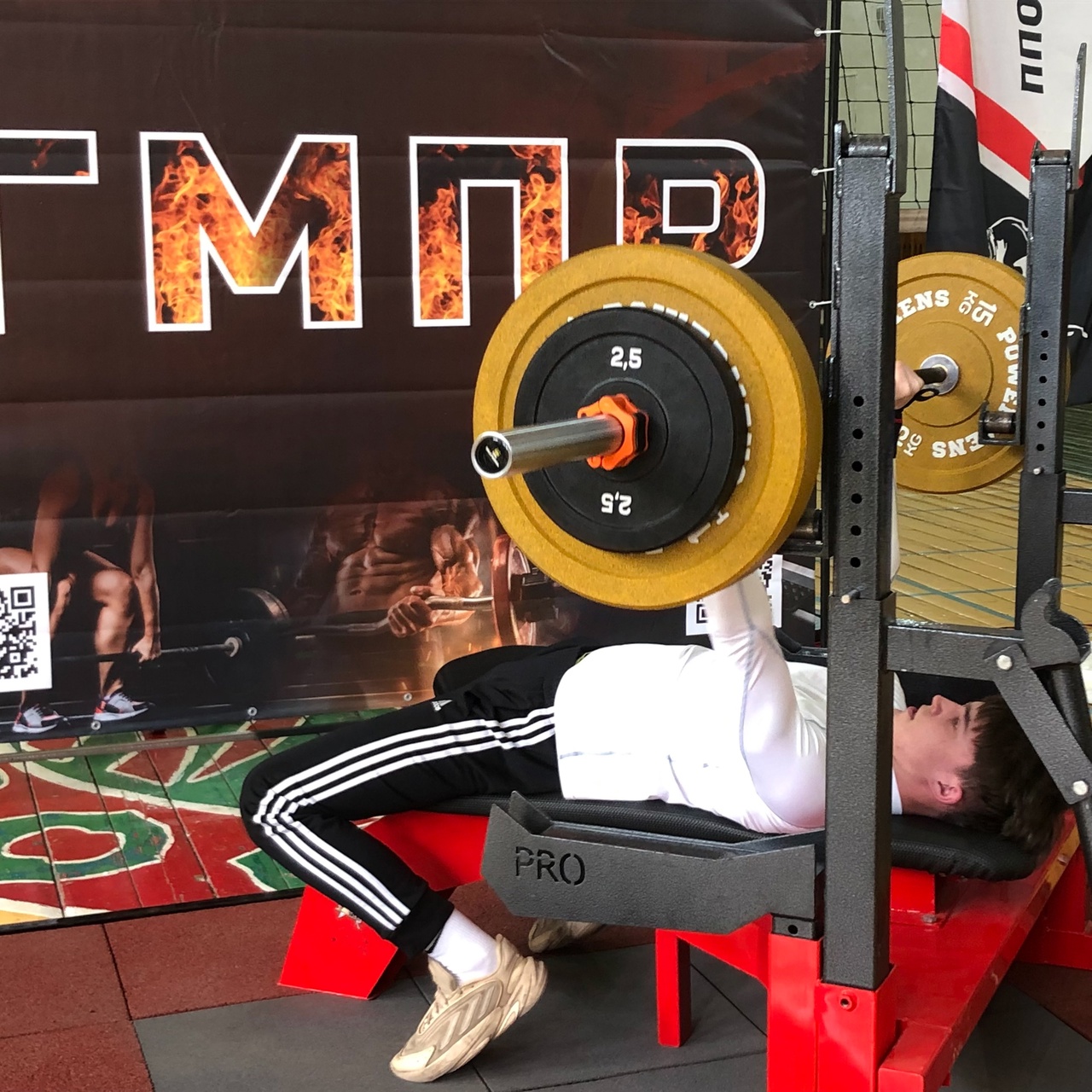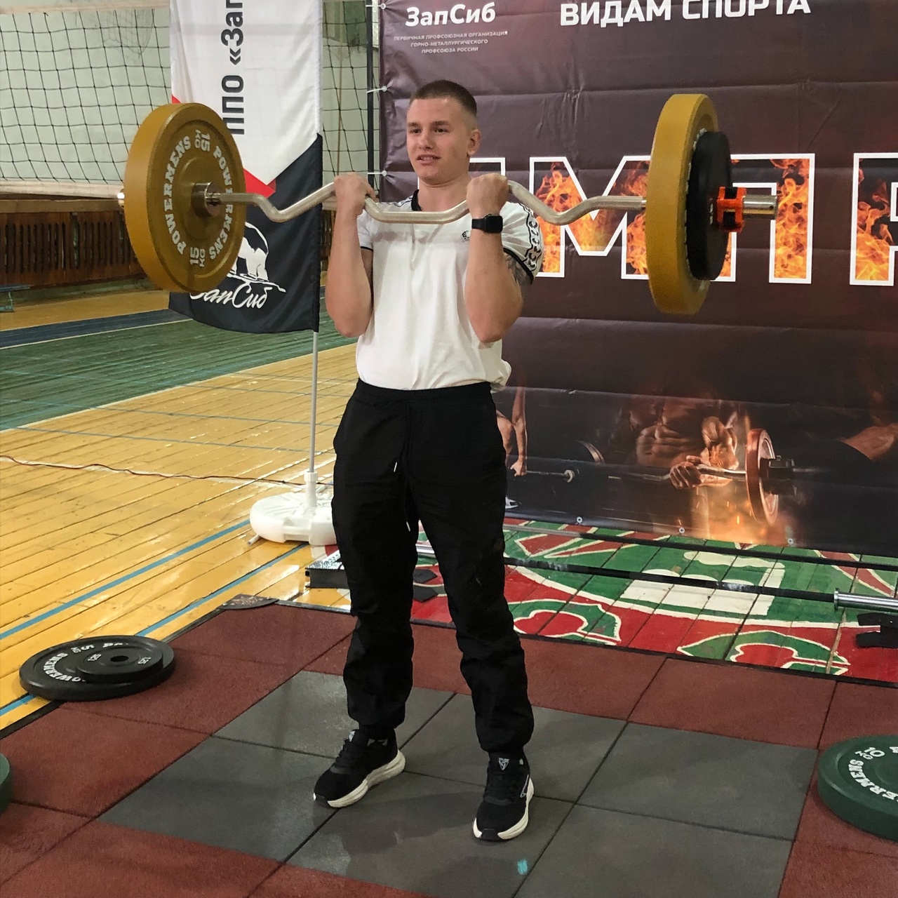 Они состязались в двух дисциплинах: русский жим (вес штанги 55 кг) и классический подъем штанги на бицепс.